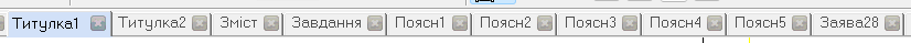 де в третій колонці — стандартна назва документу після формування; Тобто, якщо номер сторінки 101, то вона буде при сортуванні раніше, ніж 102 і т.д. Всі ці номери і назви можете змінювати на свій лад. Наприклад, якщо хочете, щоб всі сторінки (завдання, договора, заяви, де має ставити підпис замовник, були в кінці документації, ставите навпроти них просто будь-які більші номери в діапазоні від 100 до 999. Тоді відповідні вкладки із сторінками в програмі після сортування будуть називатися так само: При чому, тут важливо чи включено у налаштуваннях скрипту опцію "Зберігати звіт там де обмінник". Якщо включено — то разом із назвами тоді будуть зберігатися і цифри. Це потрібно для того, щоб потім у папці вони також відповідно сортувалися при збереженні і повторному відкритті. Сортувати таким чином можна не тільки ті сторінки, які створені скриптом "Документація", але і ті, що створені іншими скриптами, щоб друкувати зразу повністю впорядковану документацію. Налаштування модуля Для налаштування натисніть кнопку 1. Появиться таке вікно: