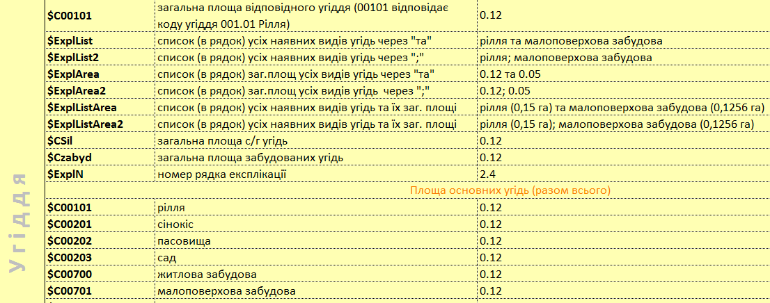 Також, доступні інші види експлікацій, які можна вставити просто в загальний текст як змінні: Створення шаблонів для MS Word Щоб створити шаблон Word, потрібно просто закинути ваш документ *.docx (чи *.doc) в одну з папок Doc у папці TD та в місцях, де мають підтягуватися потрібні дані з XML, поставити відповідні змінні (повний перелік змінних дивіться тут). В скрипті також є додаткова можливість створювати звіти в документах Word (а також OpenOffice Writer) через так зване злиття з таблицями ексель. Для цього використовується опція Буфер обміну. Детальніше про це тут.